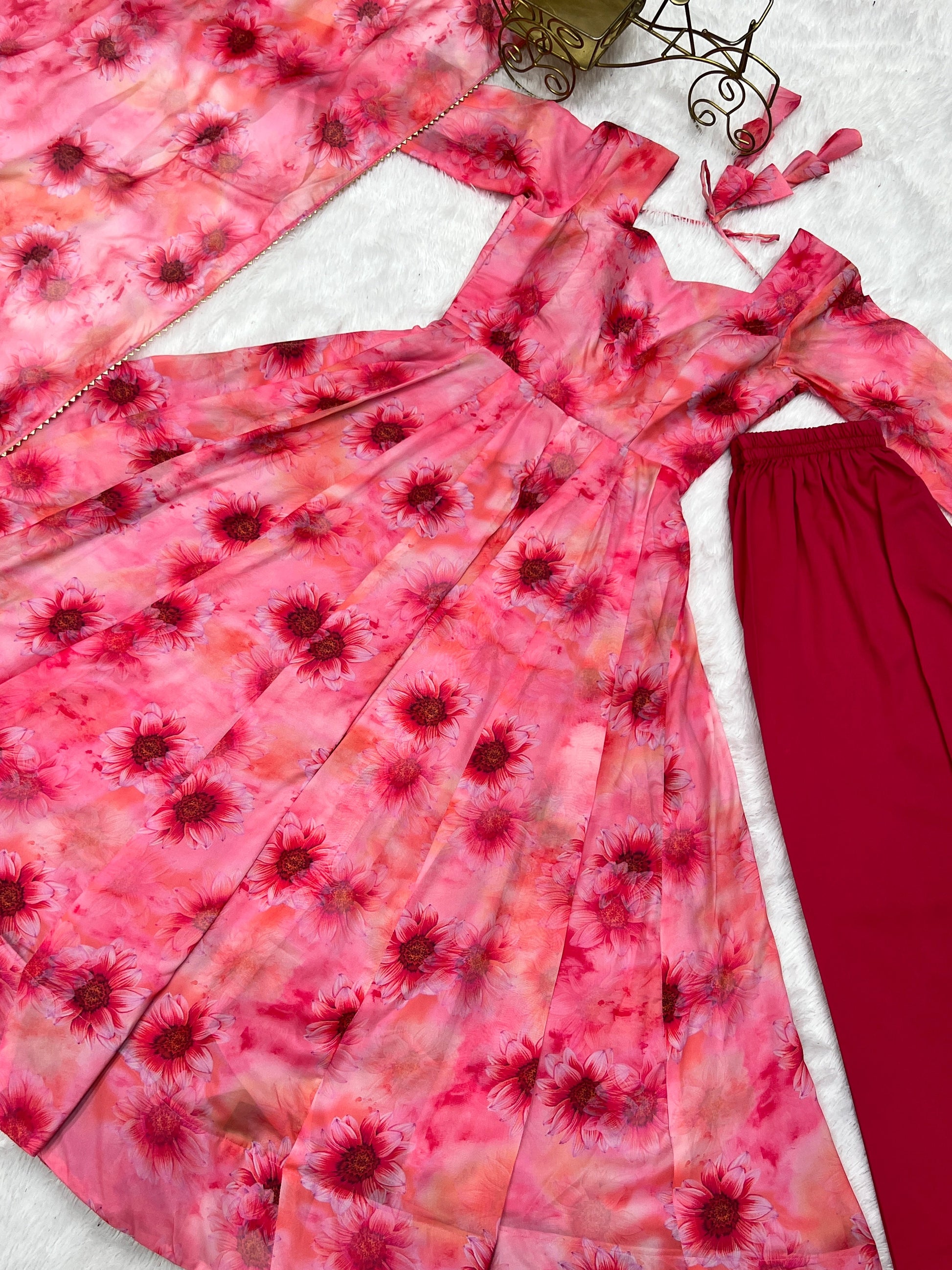 Anarkali Fabric : Heavy Pure Soft Tabbi Oraganza Silk Print