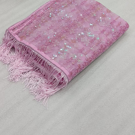 Pink Soft Net Sequence Work Fancy Designer Saree With Embroidered Blouse