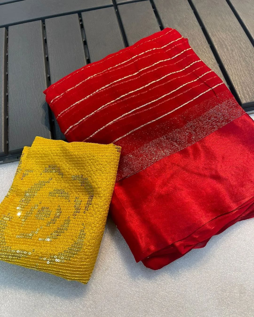Viscose Georgette Sattin Patta Saree With Emorodairy Squence Work Blouse