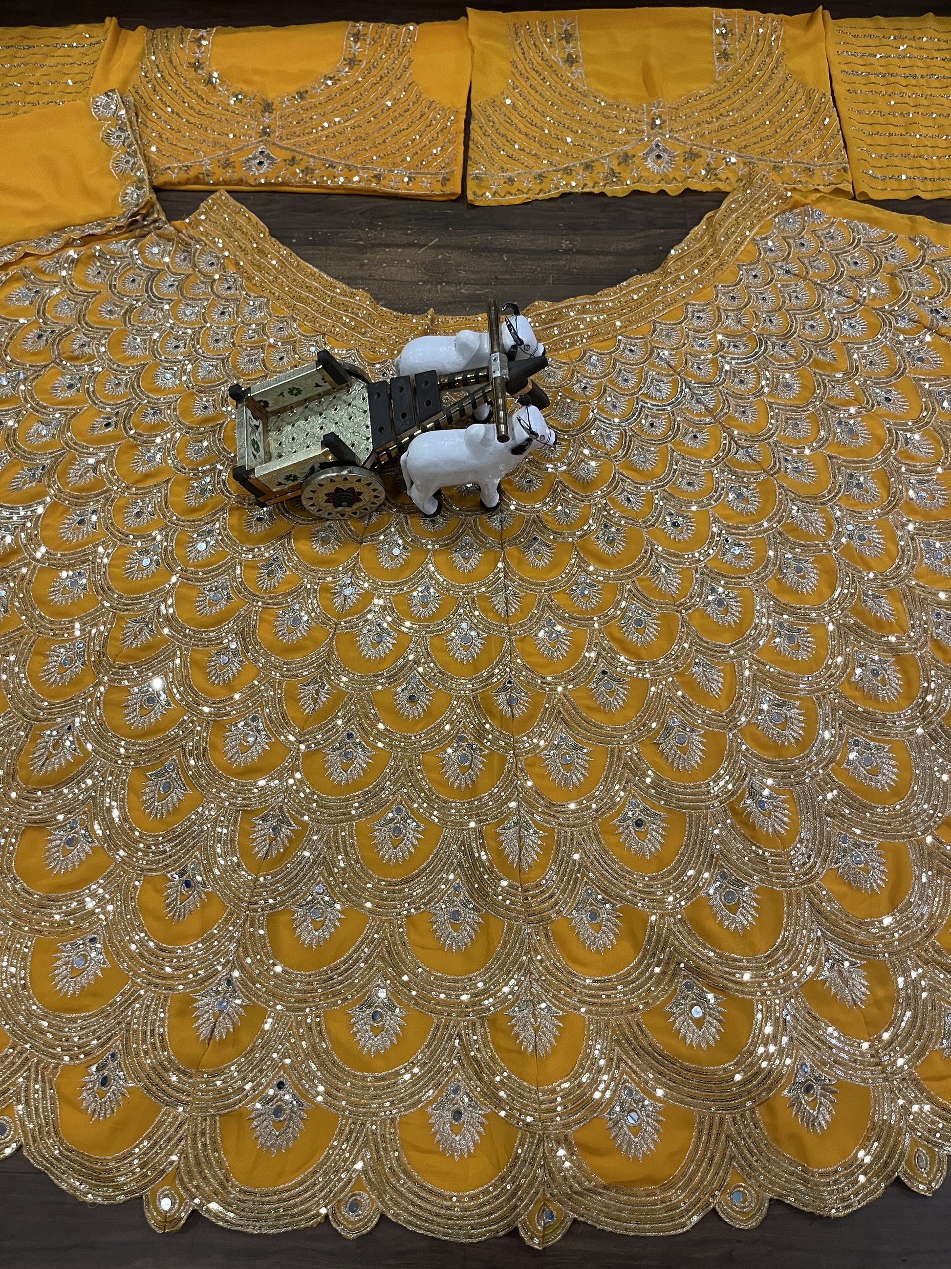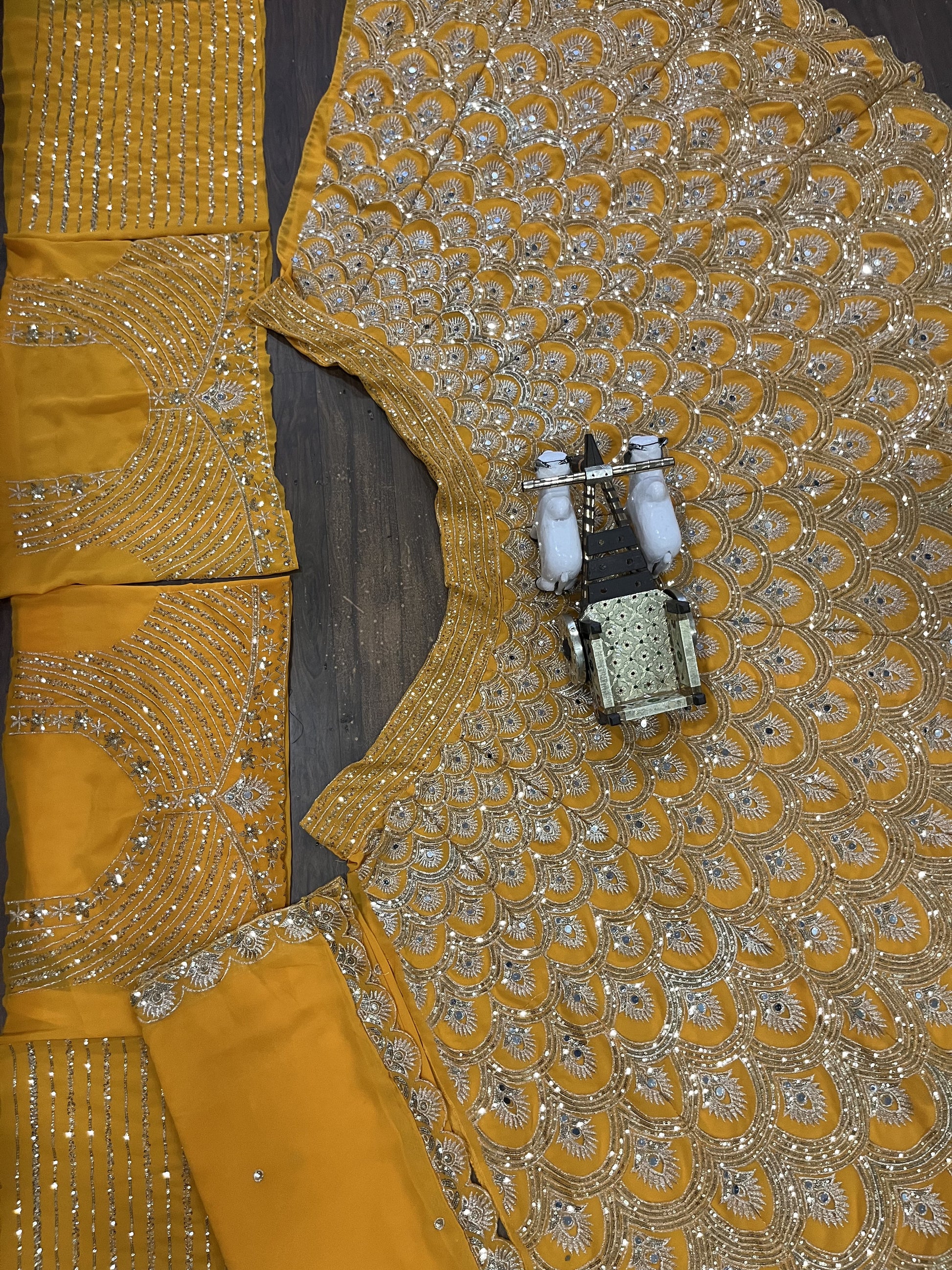 Real Mirror Work Yellow Color Georgette Semi Stitched Lehenga Choli