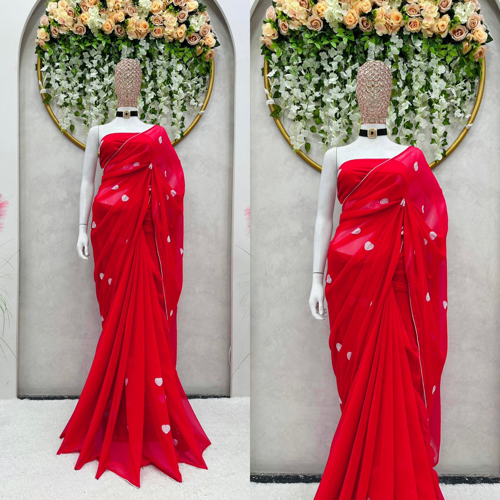 Looking some one for this same color beautiful Designer Ready to Wear Saree On Faux Georgette Fabric and With Sequence work & Piping and Blouse on also Faux Georgette fabric with Sequence work.