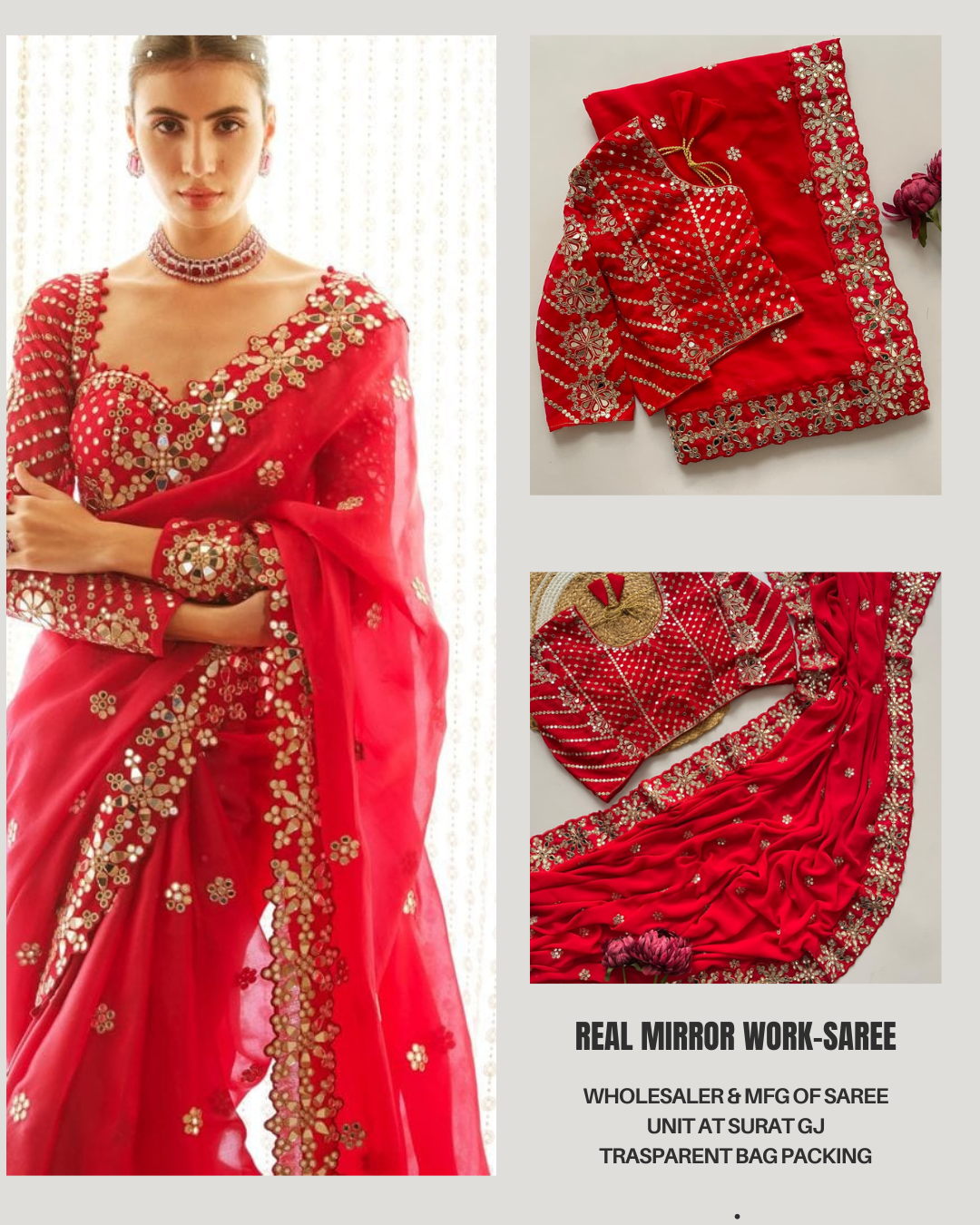 Red Color Real Mirror Work Georgette Saree