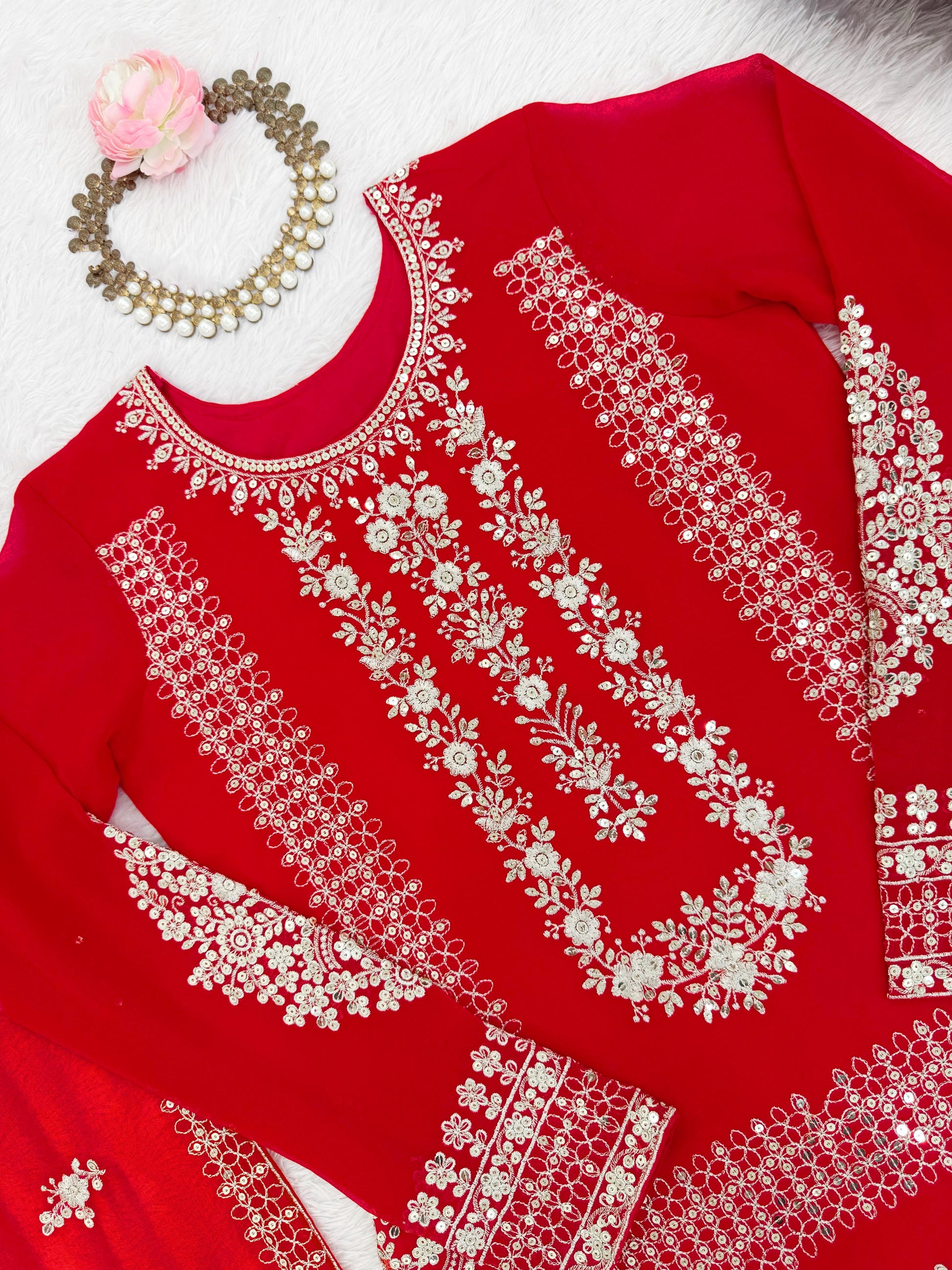 Red Georgette Fully Stitched Plazo Suit Set