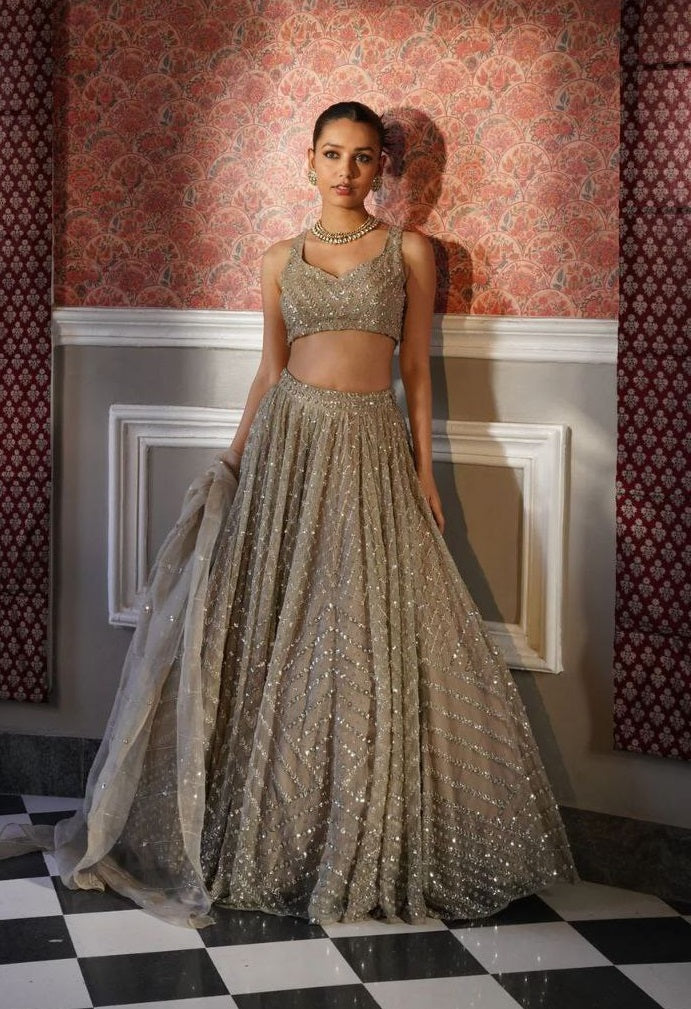 Rust Color Organza Silk Sequence Work Lehenga Choli