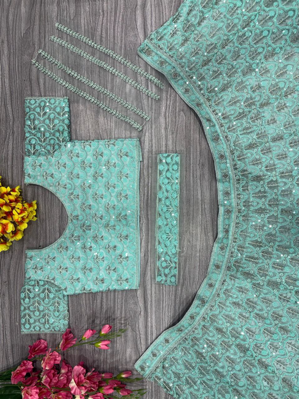 Blouse : Premium Net Embellished With Beautiful Heavy Embroidery ,Sequins Work, Heavy Coding Work, With Sleeves Work With ,Both Side Work Front And Back With Silk Inner For Blouse ( Unstitched )