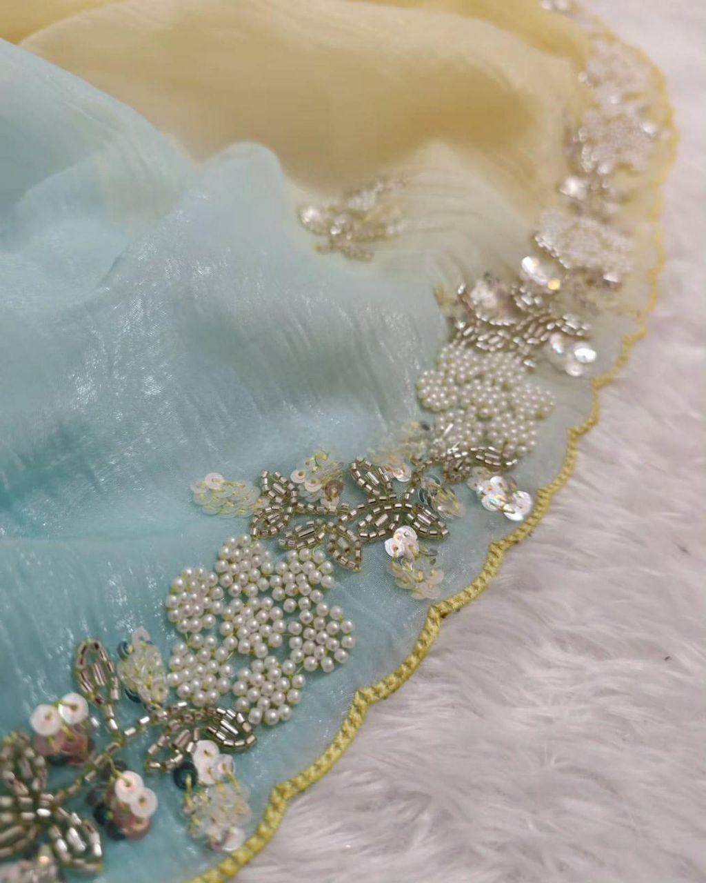 Shine with Elegance Pixel Crush Saree With Cutdana Moti And Sequins Work