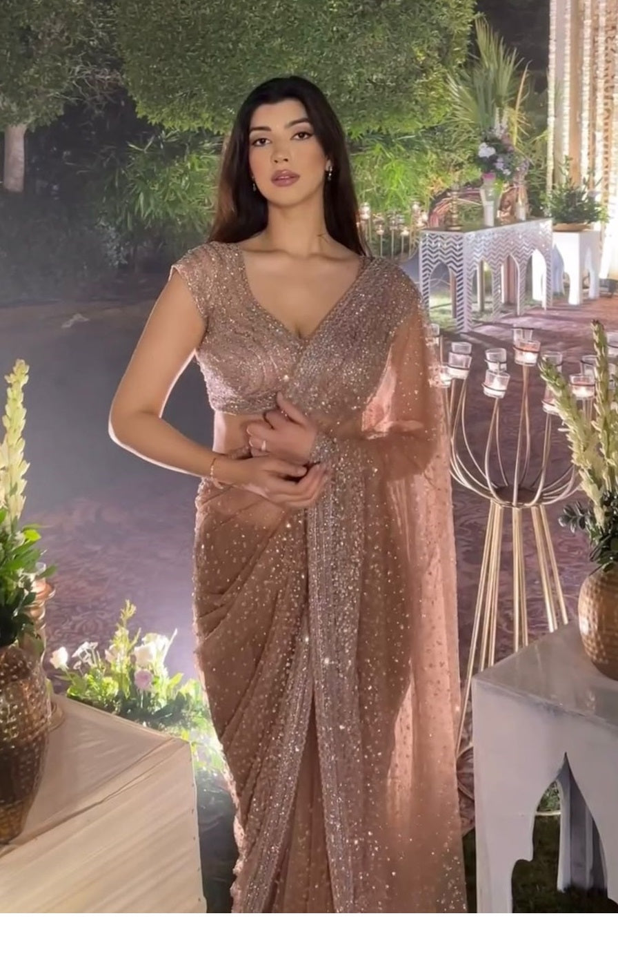 Skin Color Saree on Soft Net Febric with Sequnce work and blouse on also Soft Net Febric with Sequnce work.