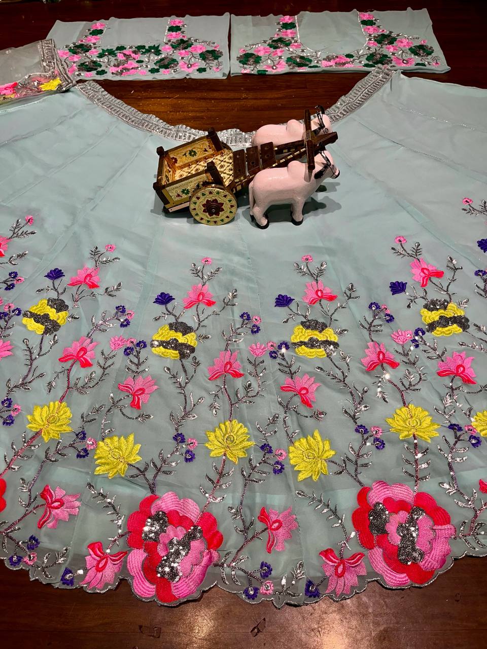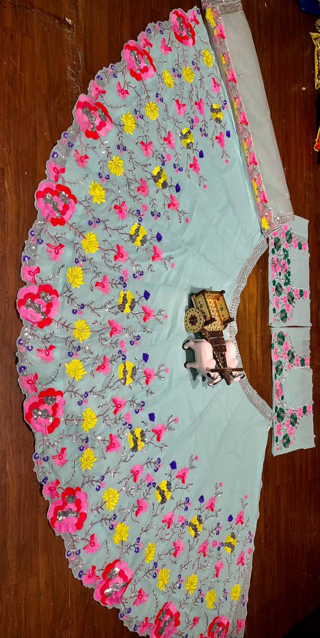 Sky Color Floral Work Lehenga Choli