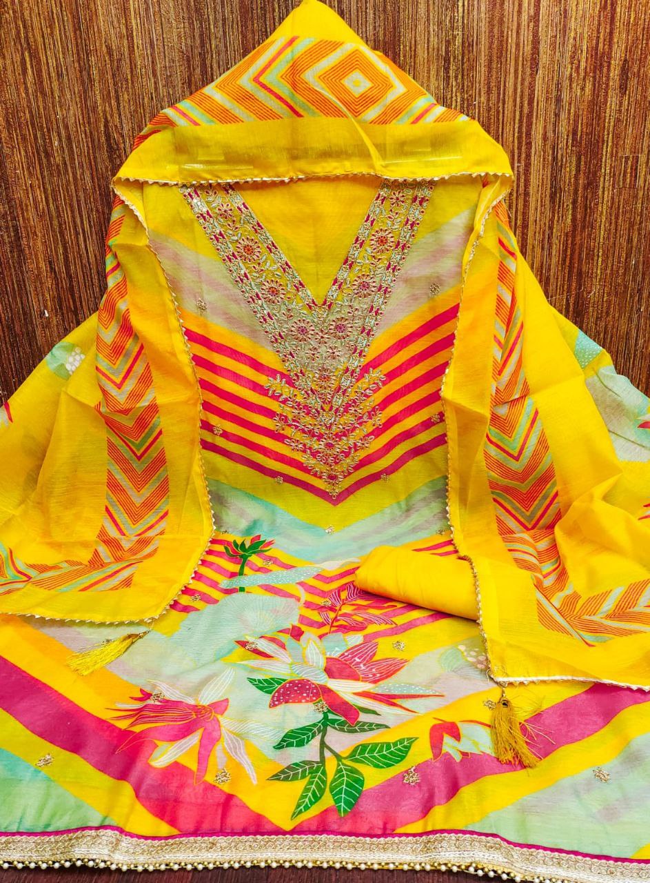 Soft Chanderi Febric Print And Embroidary Work Salwar Suit For Women