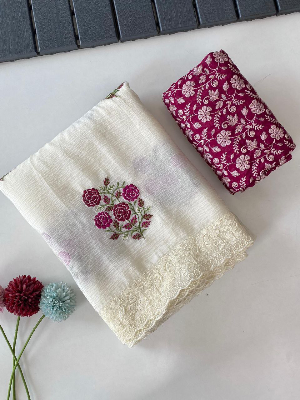 Soft Crushed Chiffon Georgette Saree with Multi-Thread Embroidery and Designer Blouse