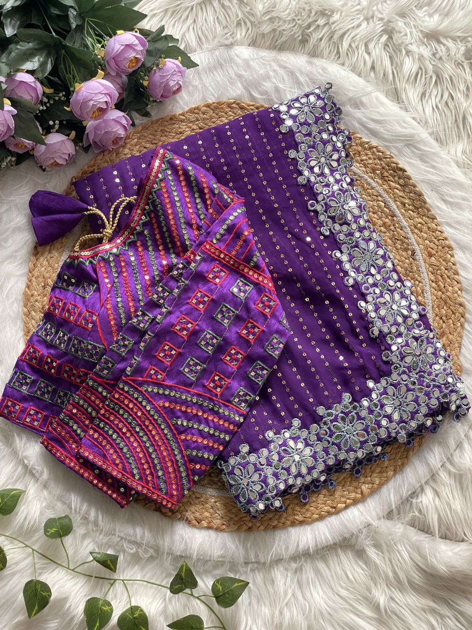 Real Mirror Work Heavy Saree With Stitched Blouse