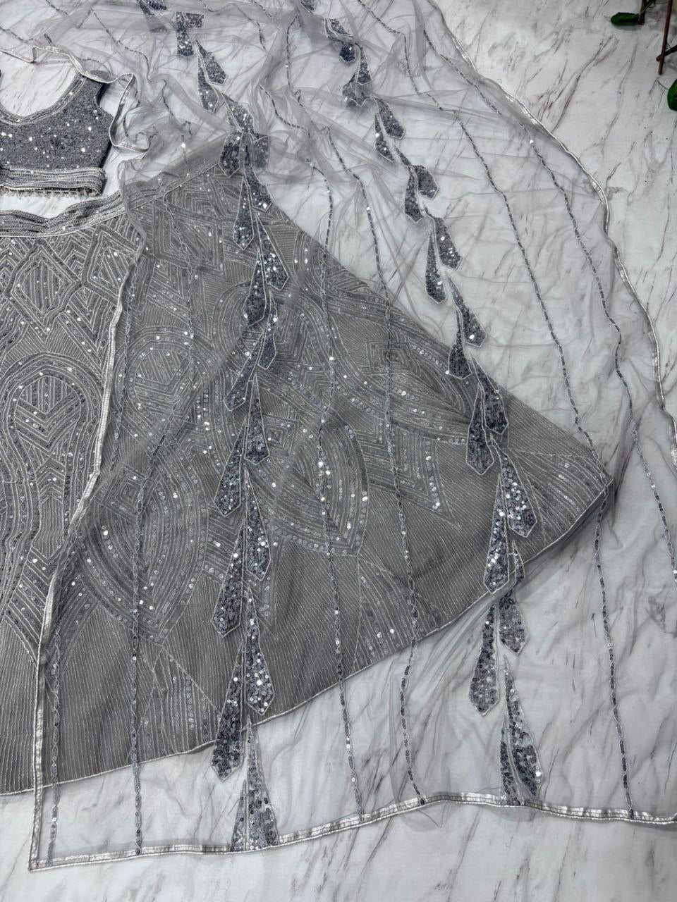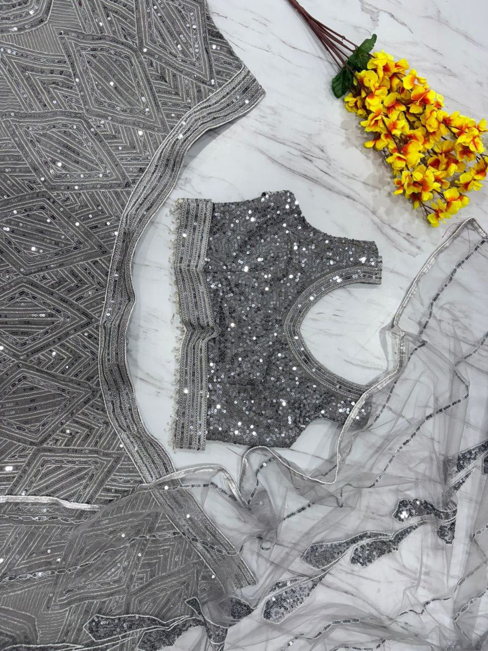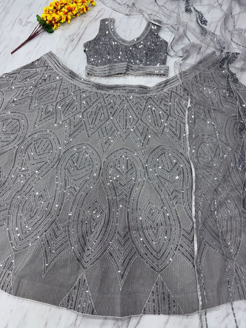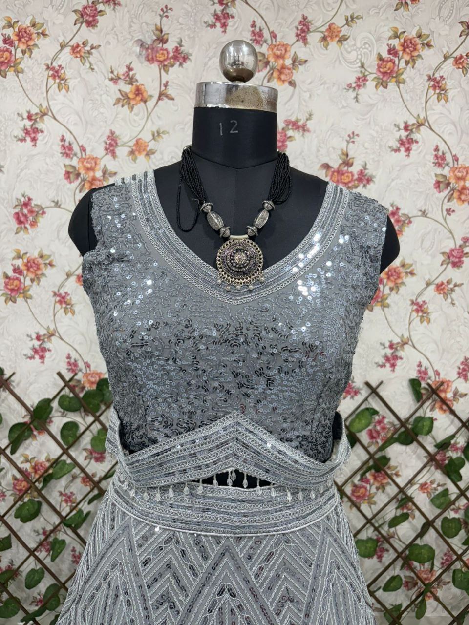 Steel Grey Color Georgette Heavy Sequence Work Lehenga Choli