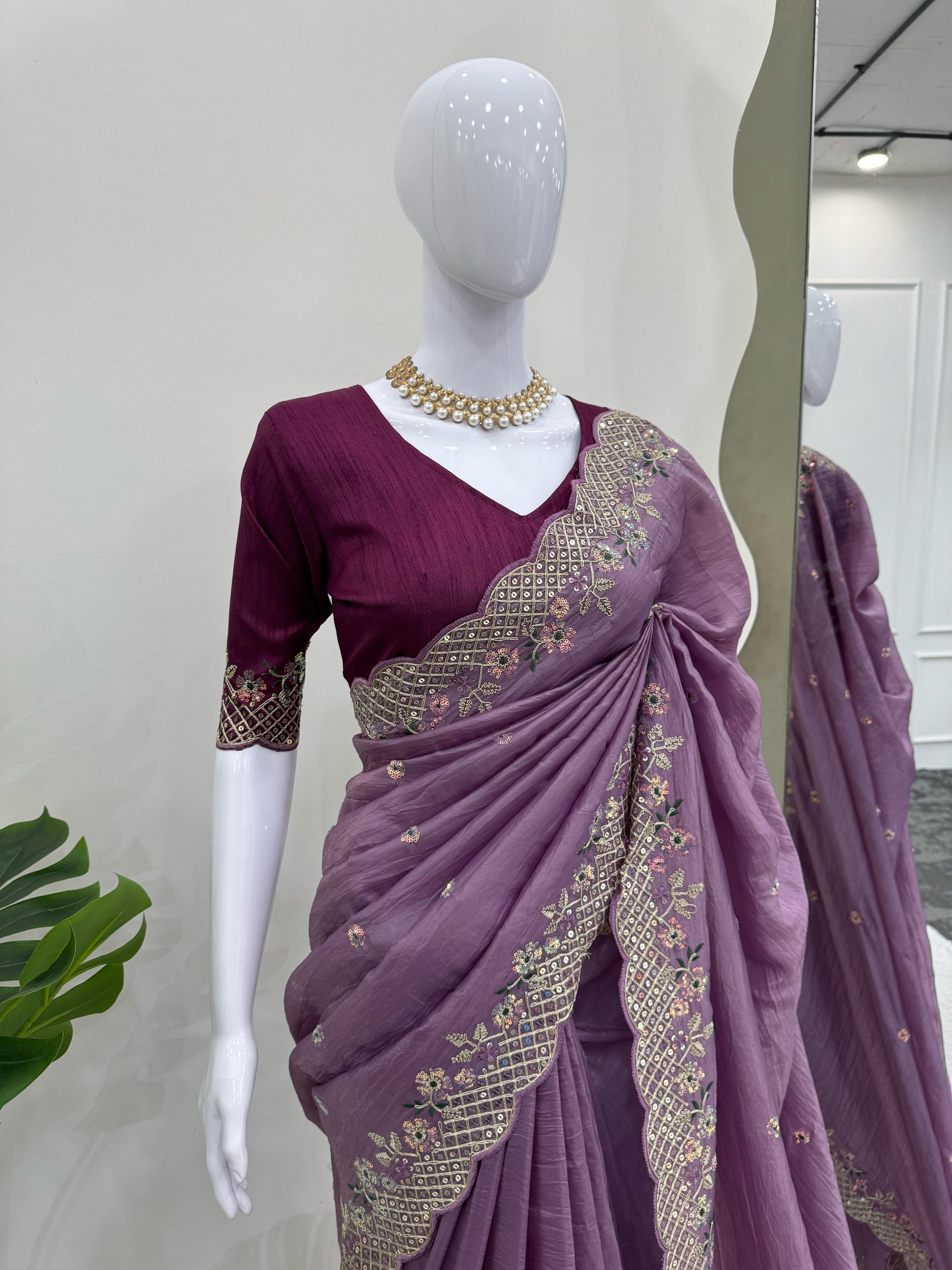 Crunchy Silk Fabric with Thread & Sequnce work and blouse on Mono Benglori Silk Febric with Thred & Sequnce work.