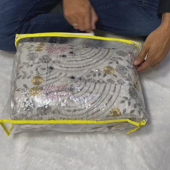 Lehenga work-Real Mirror Embroidery Sequins Work With Cancan & Canvas Patta