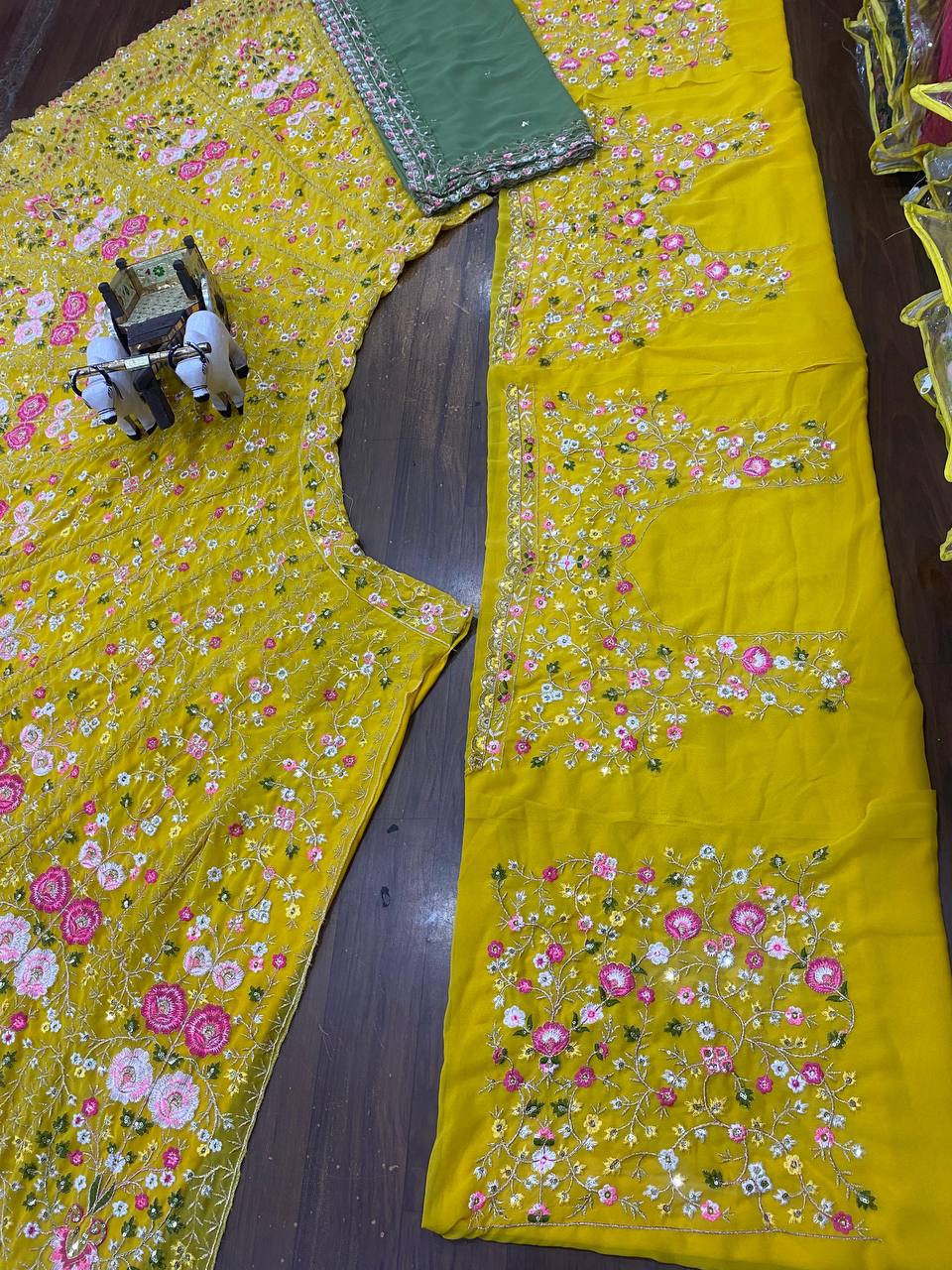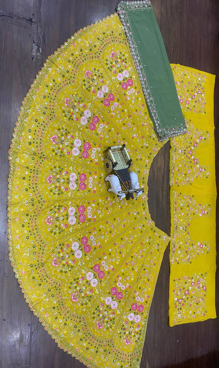 Yellow Georgette Heavy Embroidered Work Lehenga Choli